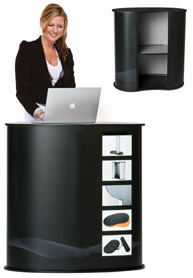 Podium Curve. Easy to transport and erect. Ideal for exhibition stands or indoor promotion.